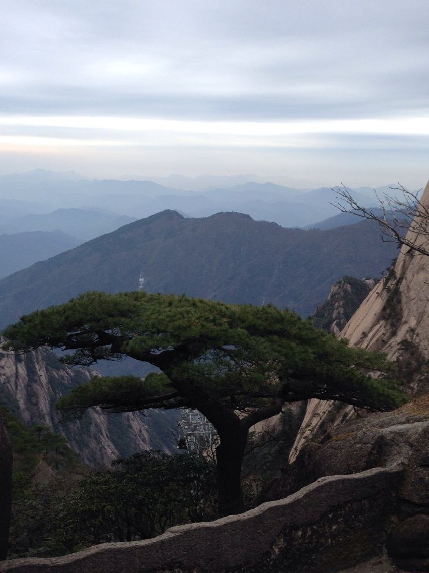 在坐完纜車后,我們共在山間徒步走了12.5公里,途中我們飽覽了云海,奇松,怪石,還遇到了太陽雪。空中是一邊大雪紛飛,一邊艷陽高照,真是美不勝收!
